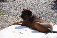 Big and robust female, dark red colour, strong bones, with excellent presumtion for breeding and dogshows.
